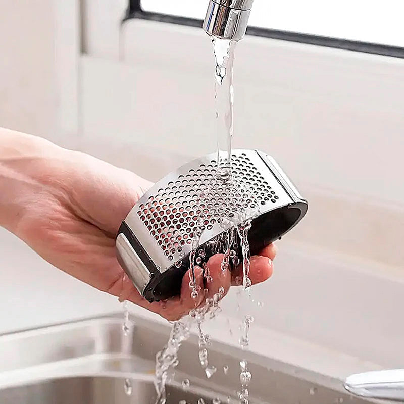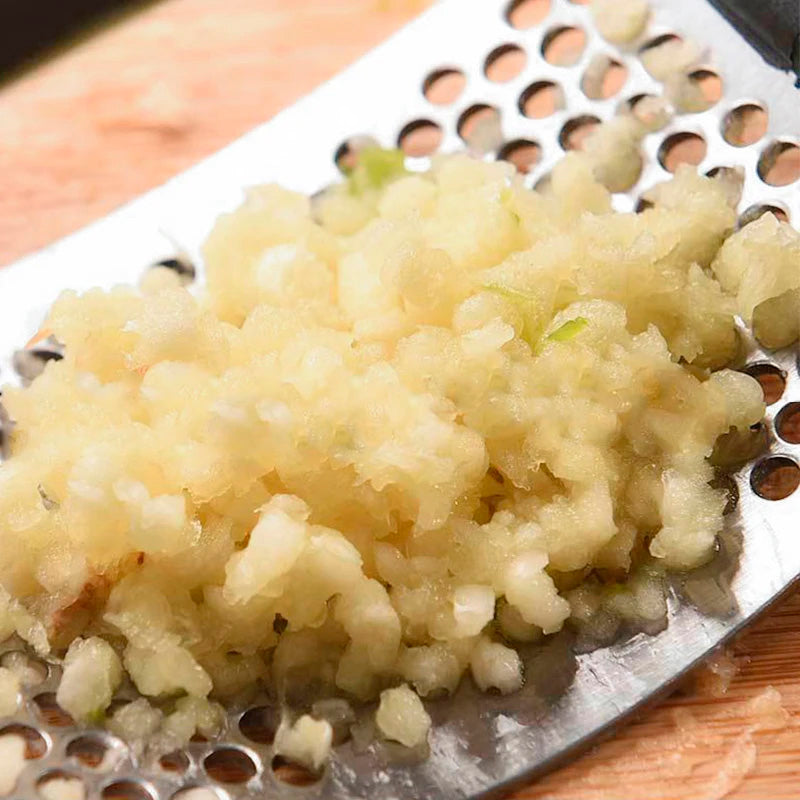Seu design forjado com aço inoxidável permite que rapidamente o alho seja triturado, sem força desnecessária.